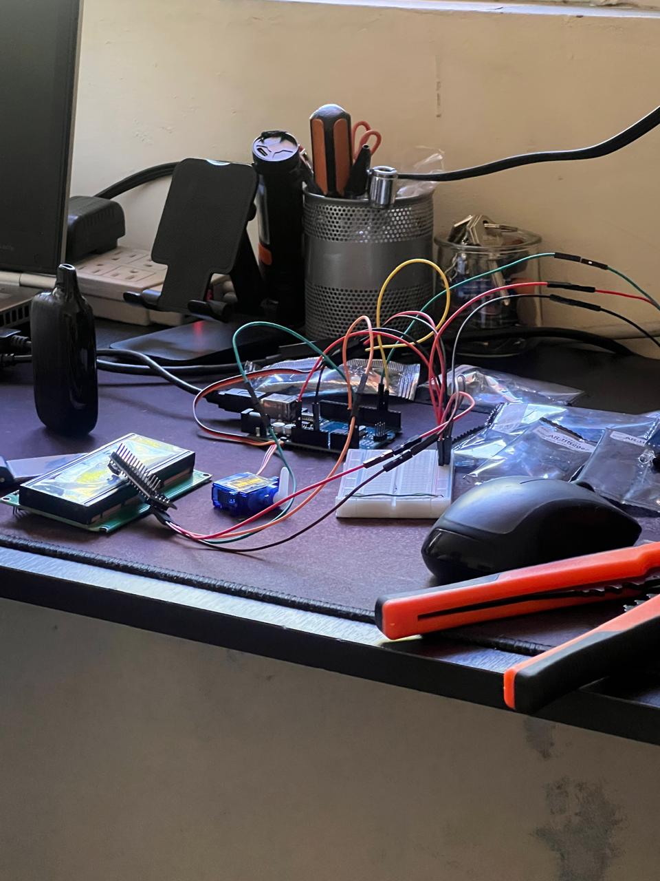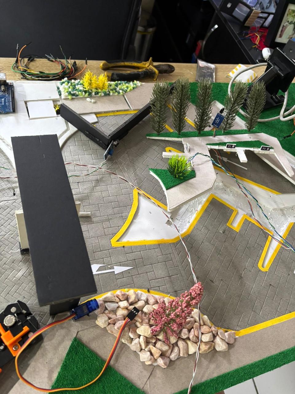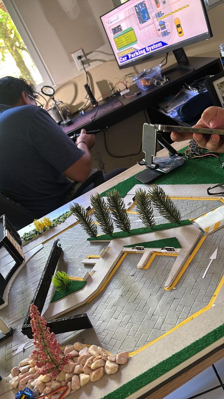 Este proyecto consiste en el desarrollo de un sistema automatizado de control de parqueo utilizando Arduino, sensores infrarrojos (IR) y servomotores. El sistema detecta la presencia de vehículos en la entrada y salida mediante sensores IR, activando automáticamente barreras controladas por servos. Asimismo, permite registrar el estado de los espacios de estacionamiento mediante sensores IR individuales, determinando si están disponibles u ocupados.